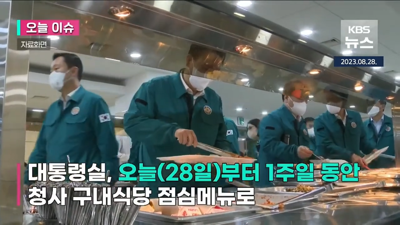 실제로 대통령실 내 구내식당 수산물 메뉴는 오늘부터 9월 1일까지 제공되는데, 대통령 경호청 구내식당과 전 직원 출입 언론인 등에게 모두 제공될 예정이라고 한다.