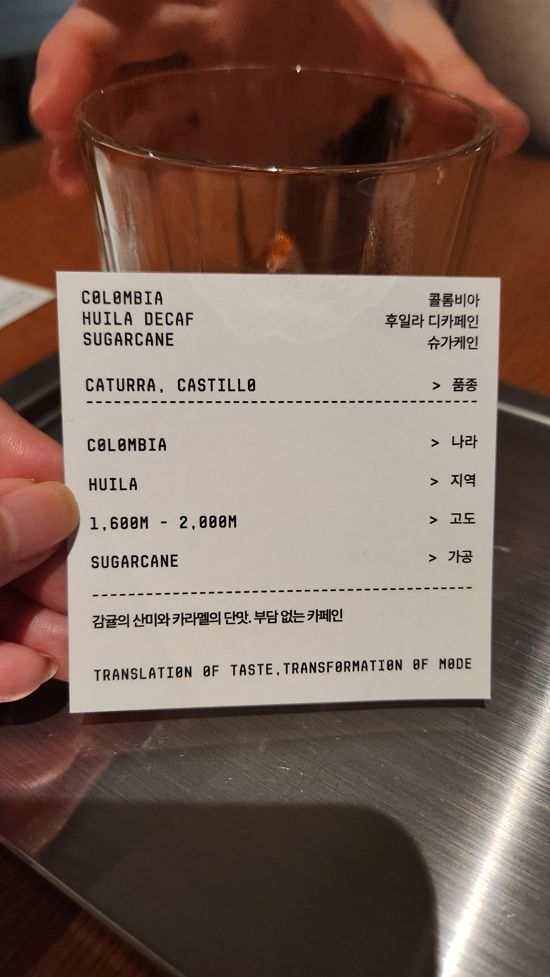 암튼 컨셉만 좀 특이하게 잡은 카페인줄 알았더니만 커피에도 엄청 신경을 쓴거 같다. 원두에 대한 정보를 담은 스페셜티 설명서도 주었다.