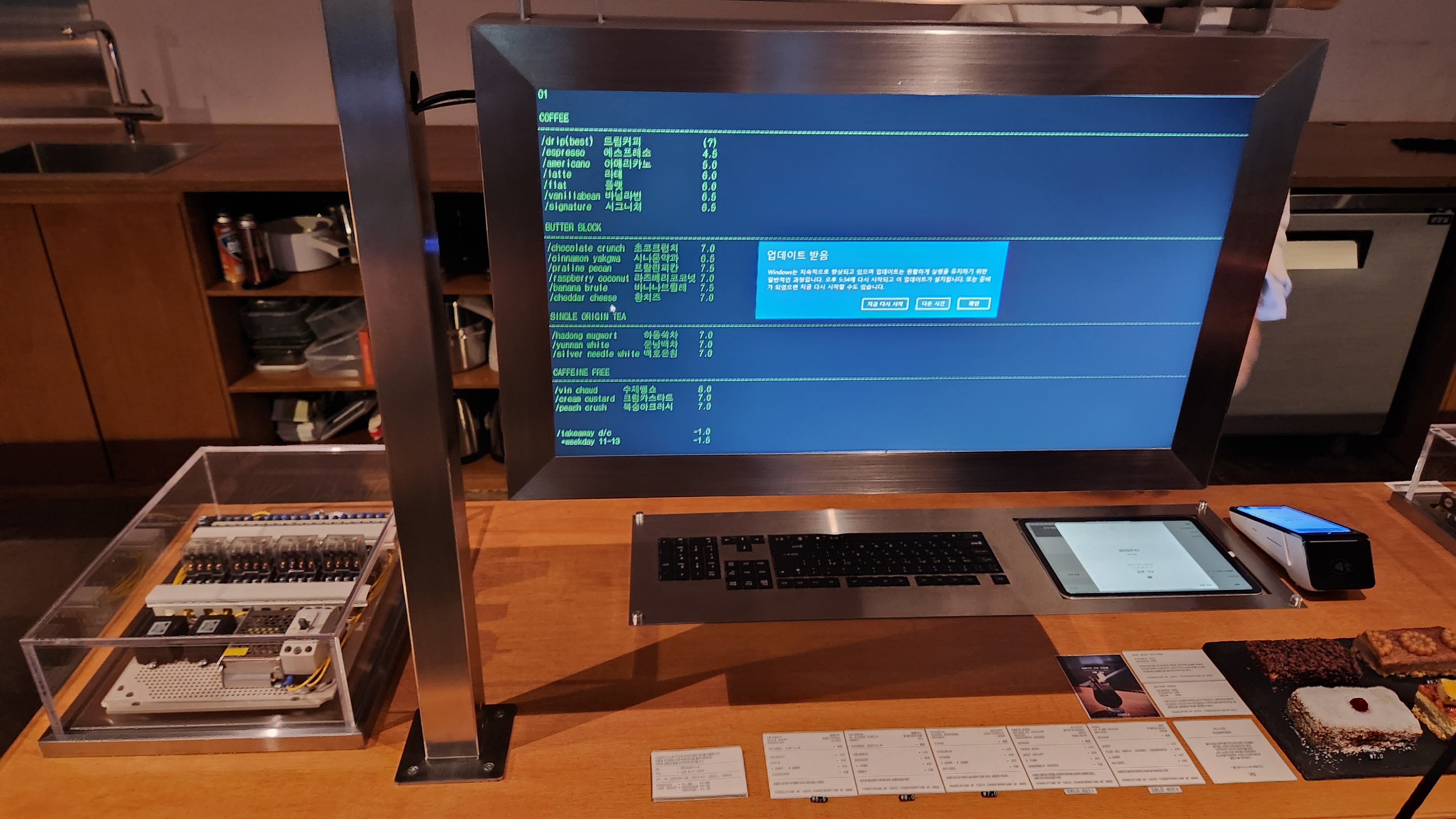 사장님인지 직원분인지 커피 완성 후 컨베이어벨트 위에 커피를 올려놓았고, 그랬더니 진짜로 커피가 서빙되었다. ㅎ