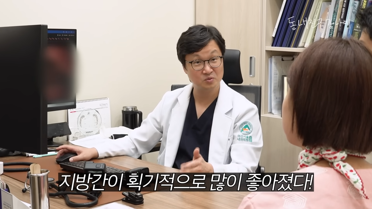 이에 초음파 검사 결과를 확인한 담당 의사는"간 색깔이 콩팥과 비교했을 때 거의 비슷하다. 지방간은 거의 없다. 갑상선도 아까 걱정했는데 갑상선 깨끗하다. 위도 깨끗하다”며 “이번에 살을 빼면서 지방간이 획기적으로 많이 좋아졌다”고 대답했다! 대박!
