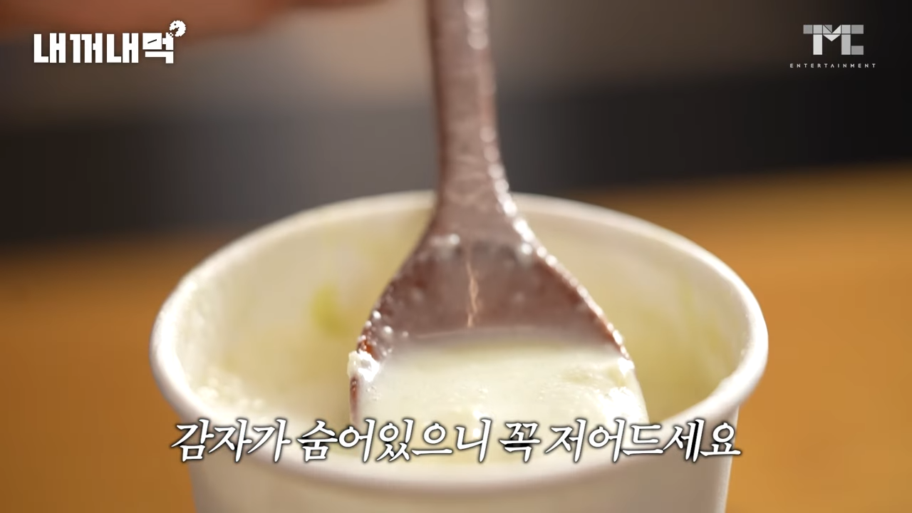 암튼 감자가 숨어 있으니 꼭 저어서, 그리고 씹어 먹으라고 합니다. ㅎ