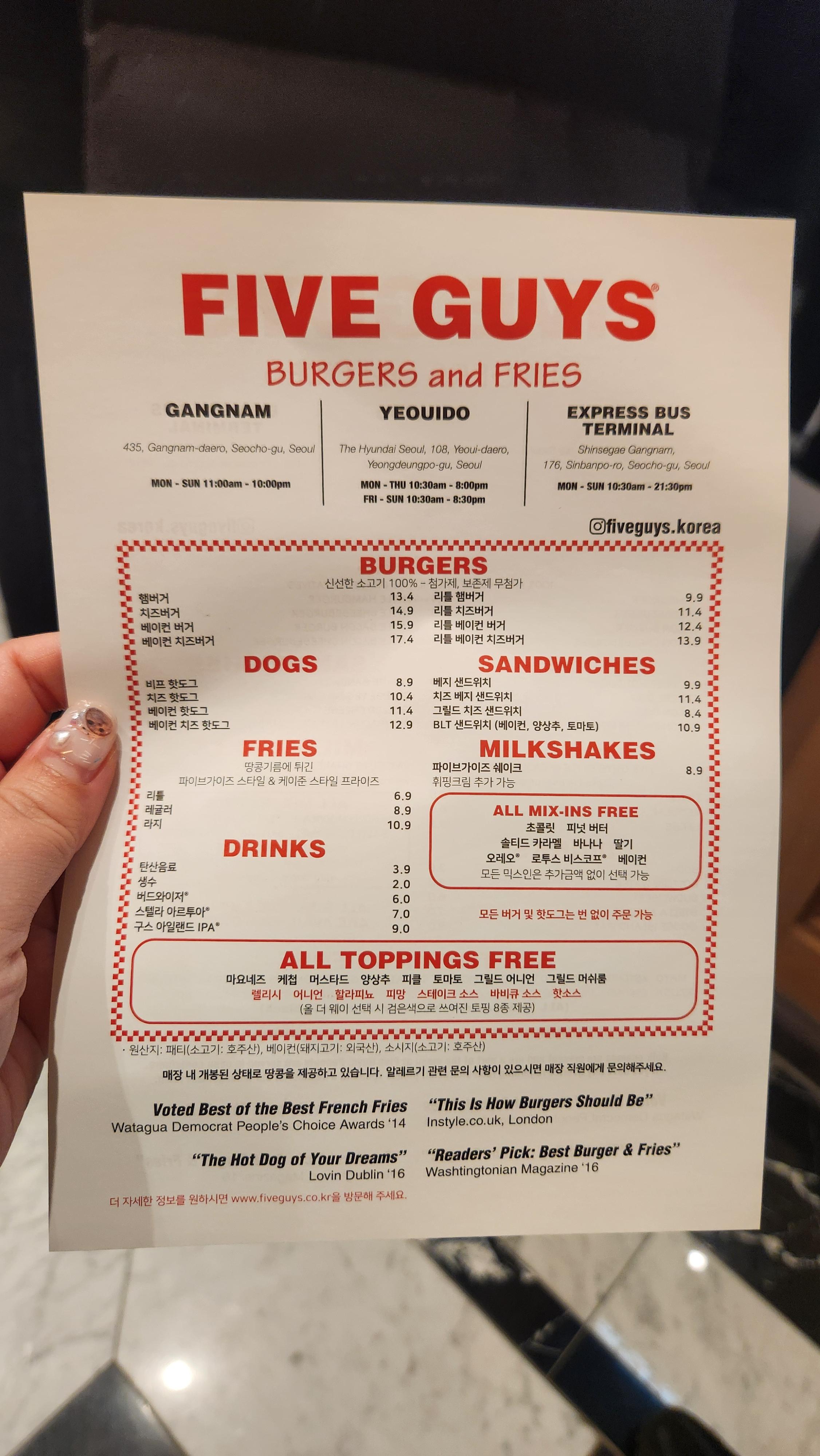 저는 지난 번에 강남 파이브가이즈 갔을 때도 느낀거지만 엄청 대기해서 먹을 정도인지는.....ㅠㅠ